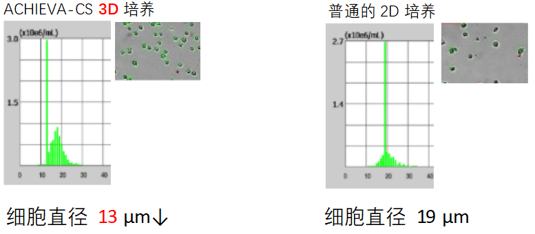 ACHIEVA-CS 3D培养后的细胞直径更小,拥有更高的活性。